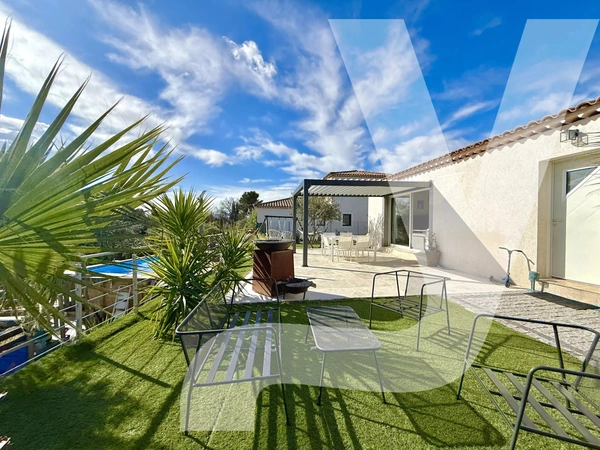 L’extérieur dispose d’une piscine chauffée un solarium et une cuisine d’été, tandis que les équipements modernes tels que le chauffe-eau thermodynamique, les caméras extérieures et l’arrosage automatique. Un grand garage carrelé, équipé d’une prise pour véhicule électrique, complète ce bien aux prestations soignées, alliant modernité, confort et tranquillité.
